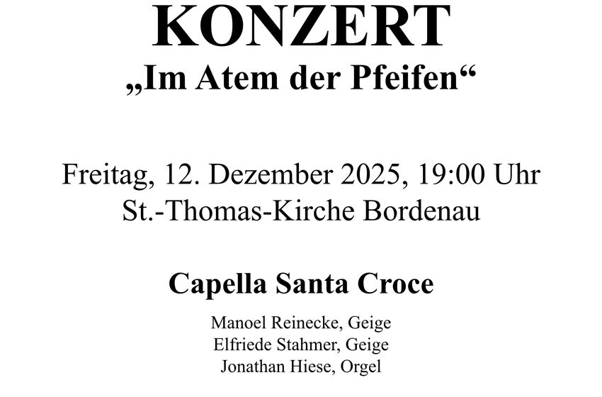 Es musiziert die Capella Santa Croce. Deren Organist Jonathan Hiese gab hier in Bordenau schon im vergangenen Jahr nach der geglückten Restaurierung der historischen Bethmann-Orgel eines der ...