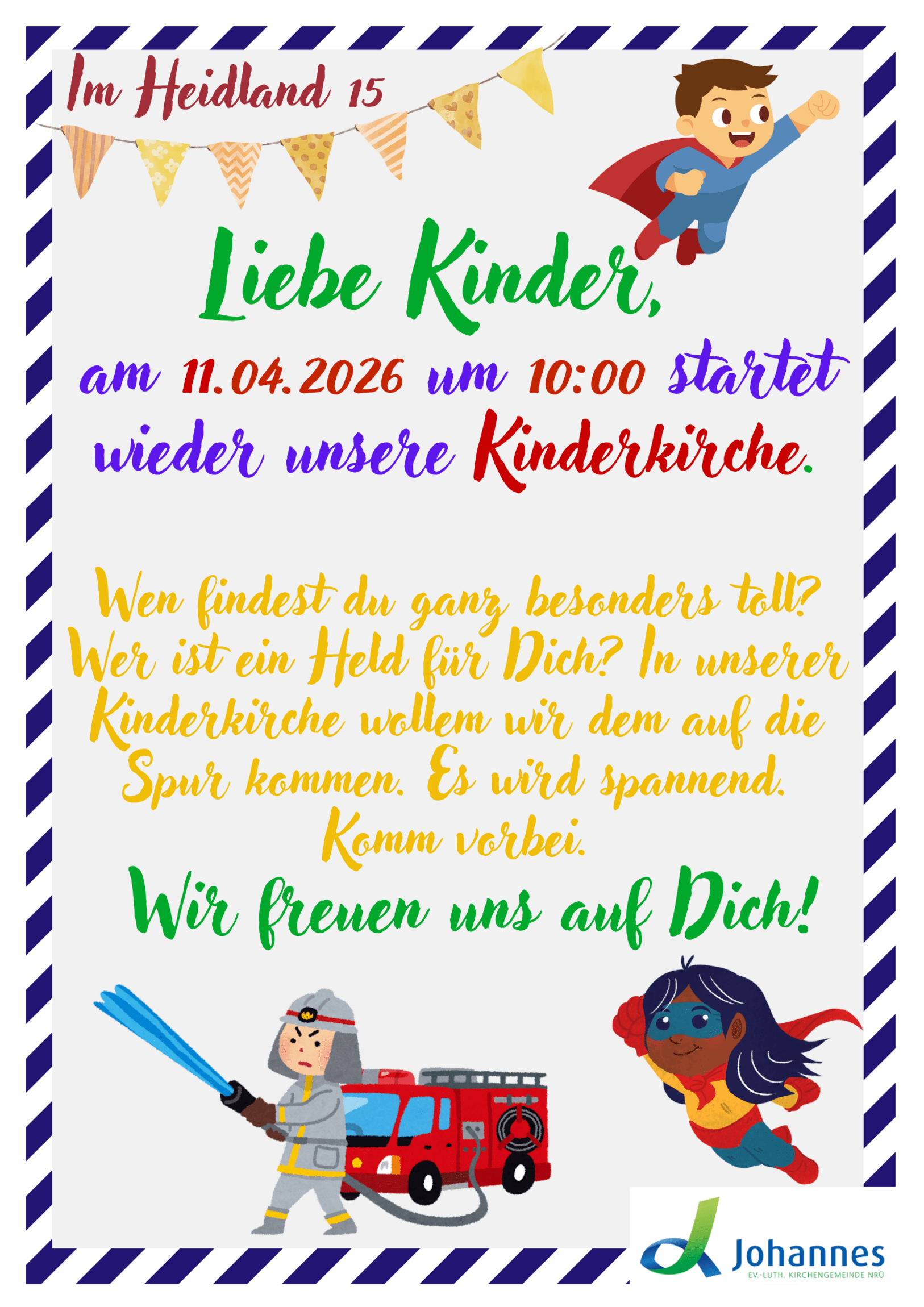 Am Samstag (11.04.2026) um 10:00 Uhr startet wieder unsere Kinderkirche.