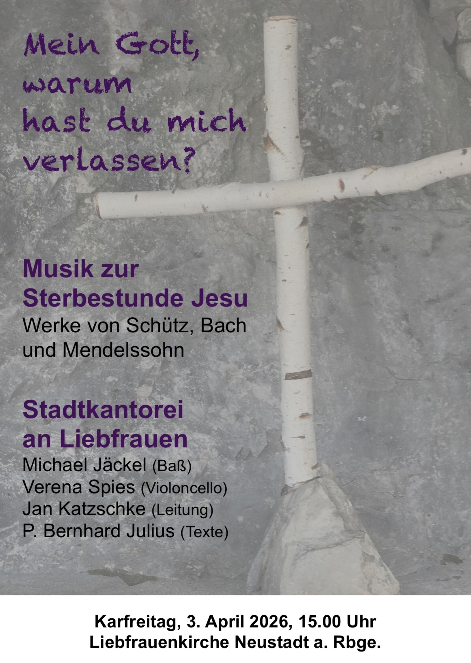 Stadtkantorei an Líebfrauen Karfreitag, 15 Uhr Musik zur Sterbestunde Jesu Die musikalische Leitung hat Jan Katzschke